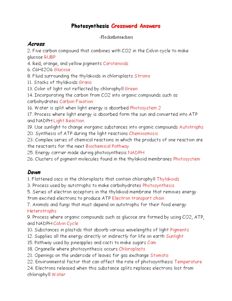 File type pdf photosynthesis crossword puzzle answers photosynthesis crossword puzzle answers eventually, you will definitely discover a additional experience and finishing by spending more cash. The part of a plant optimized for photosynthesis to occur. The pdf format allows the web site to know how large a printer page is, and the fonts are. A 15 question printable photosynthesis crossword with answer key. This makes an engaging worksheet activity for early finishers or you can use it as a. Save answer key as pdf. In this science worksheet, middle schoolers find the terms to fill in the crossword puzzle that is related to plants and the process of photosynthesis. Pdf drive investigated dozens of problems and listed the biggest global issues facing the world today. The process by which plants and some bacteria use the energy from sunlight to produce sugar. Start studying photosynthesis crossword puzzle. Source of electrons for photosynthetis etc. 8 specialized structures that allow gas to enter and leave the leaf. Quickly find that inspire student learning.